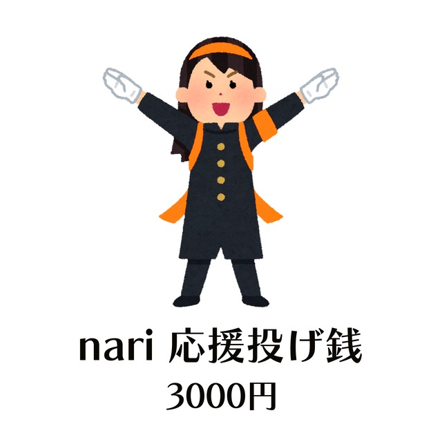 日頃nariを応援してくださり、ありがとうございます!!! サブスクで聴いた音源イイネ! YouTubeのミュージックビデオいいね!! 先日のライブ最高だったよ!!! 活動頑張ってるね!!!! これからもどんどん頑張ってほしい!!!!! と思っていただけたら、 ぜひ応援投げ銭をお願いいたしますm(_ _)m これからも夢に向かって進むための活動資金として、 大切に使わせていただきます!!! ご支援いただいた方には 特別サンキュー画像をプレゼントさせていただいてます! ※他の金額展開もございます。 ※他にもグッズやCDの販売もございます。じっくりご覧いただけたら嬉しいです!!詳細は商品ページにて。